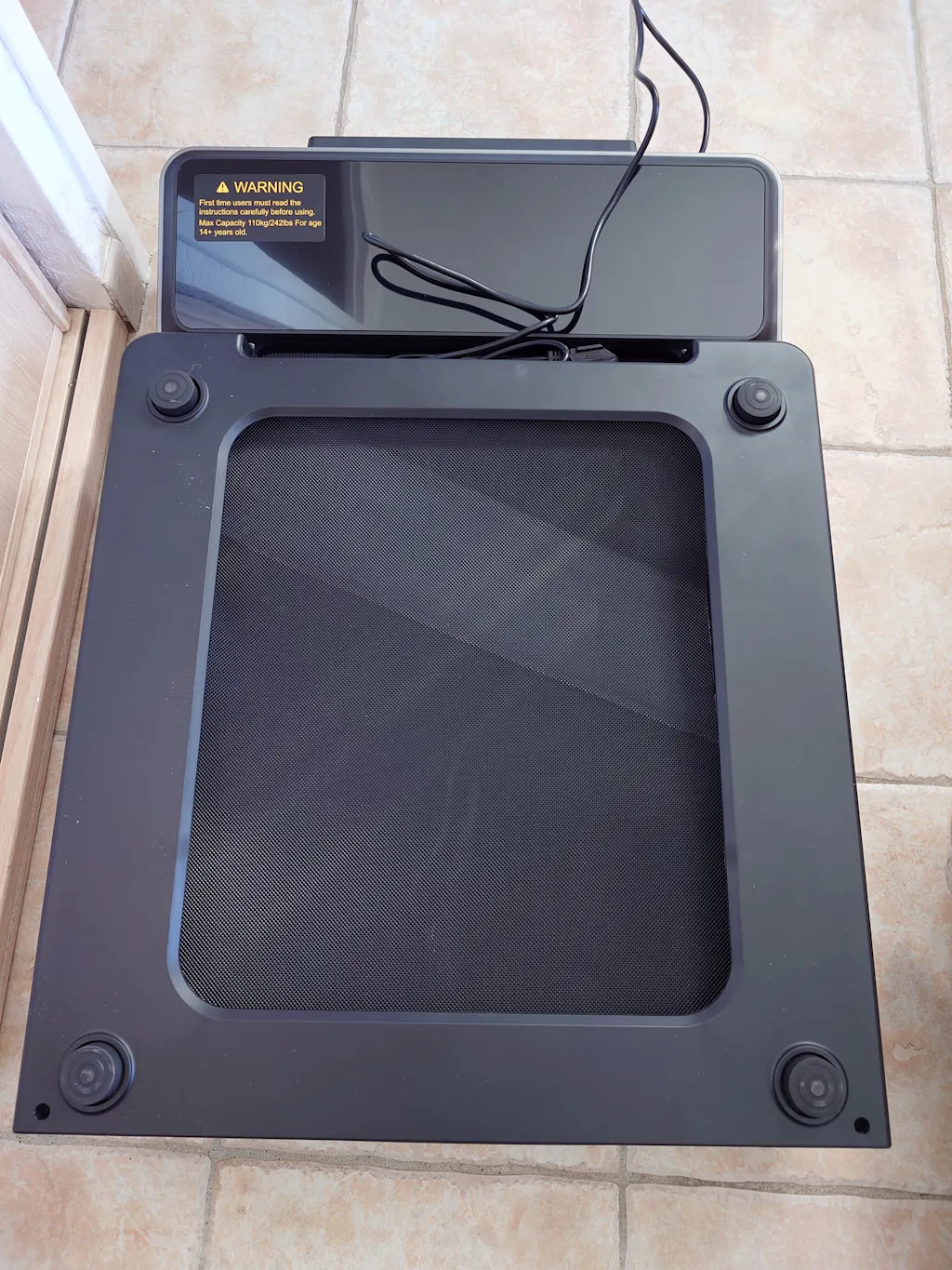 Le tapis fait le job. Les vitesses se passent bien, il est agréable à marcher, et pas énormément bruyant. En revanche, il est difficile à ranger au vu de son épaisseur, et il est compliqué à bouger. Il est lourd, et il n'y a pas de moyen efficace de le manier pour le bouger en version pliée. Le tapis se désolidarise de la base lorsqu'il est en station debout, du coup j'ai l'impression d'être forcée de le garder à l'horizontale, ce qui fait qu'il est encombrant.